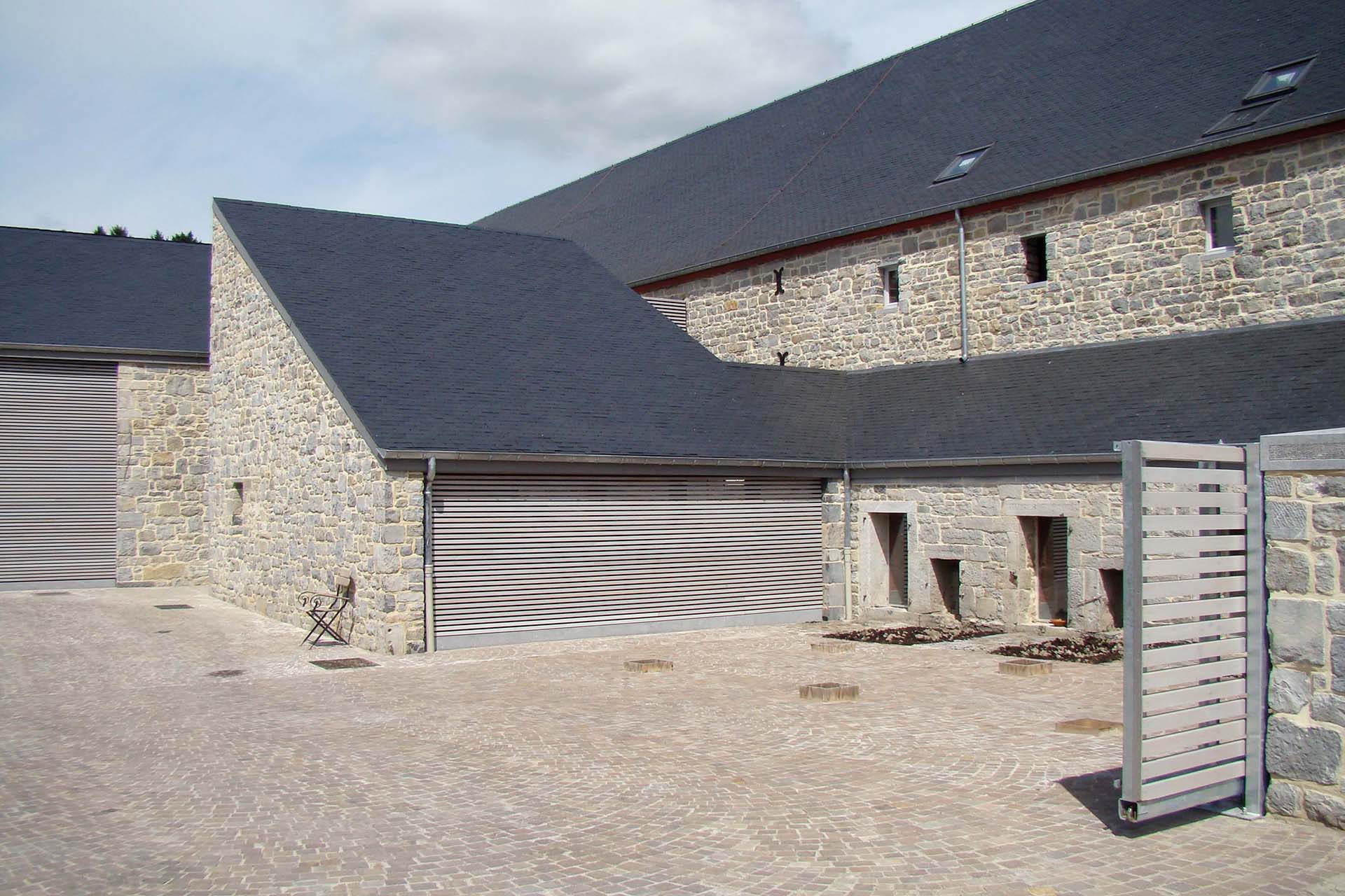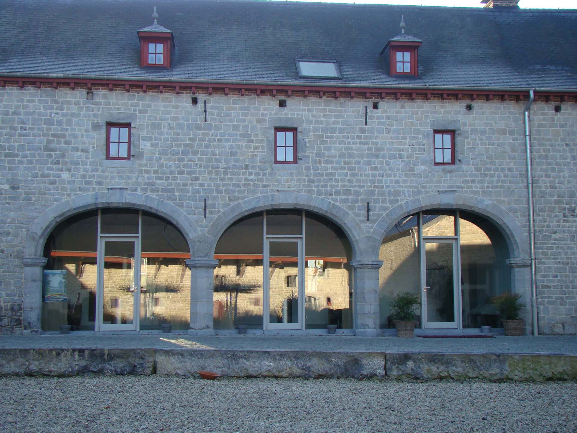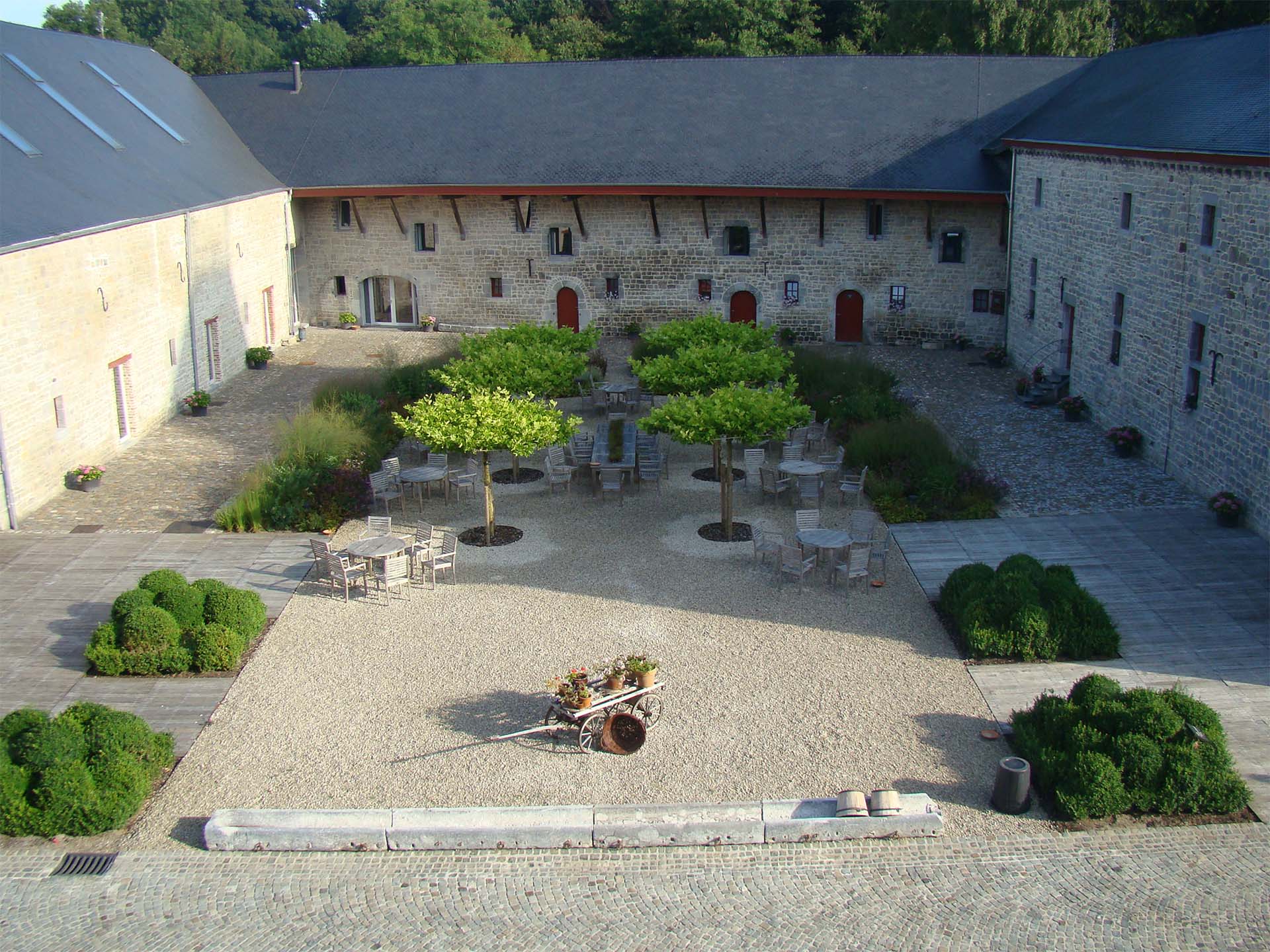 Restauration et transformation de la Ferme du Château de Jemeppe en centre de séminaires. Dans le cadre de ce projet, nous avons également procédé à un nouvel aménagement de la cour intérieure.