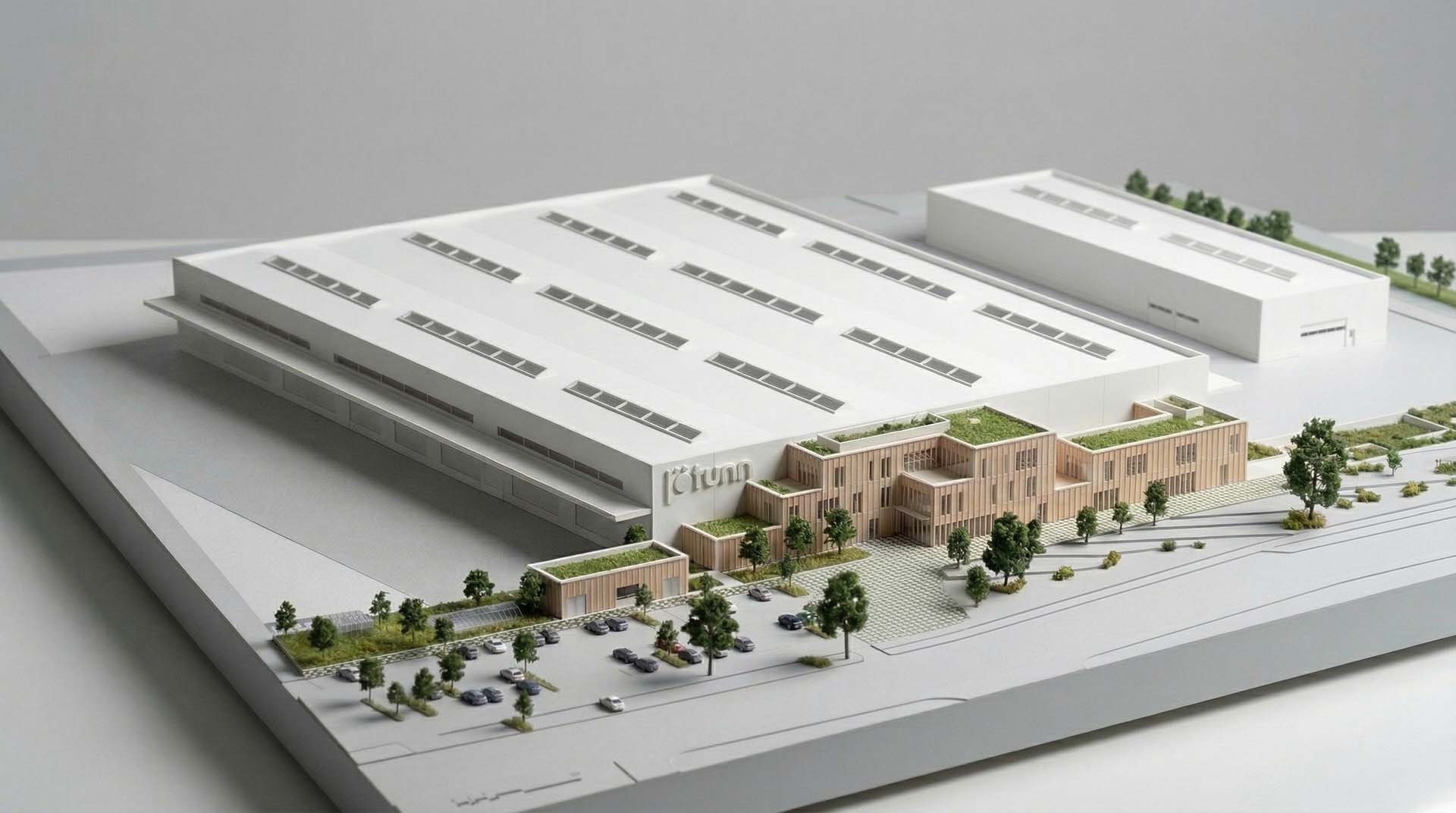 Les halls industriels sont conçus pour accompagner une production modulaire évolutive, alliant efficacité opérationnelle, ergonomie et flexibilité. Les bureaux privilégient quant à eux la lumière, l’ouverture et les usages partagés, intégrant des espaces de détente, de sport et de collaboration au quotidien. Une partie de ces bureaux sera auto-construite en modules préfabriqués par Jötunn elle-même, faisant du bâtiment une vitrine concrète du savoir-faire de l’entreprise.